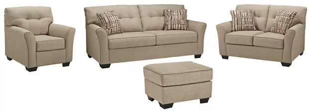Includes 4 pieces: sofa, loveseat, chair and ottoman