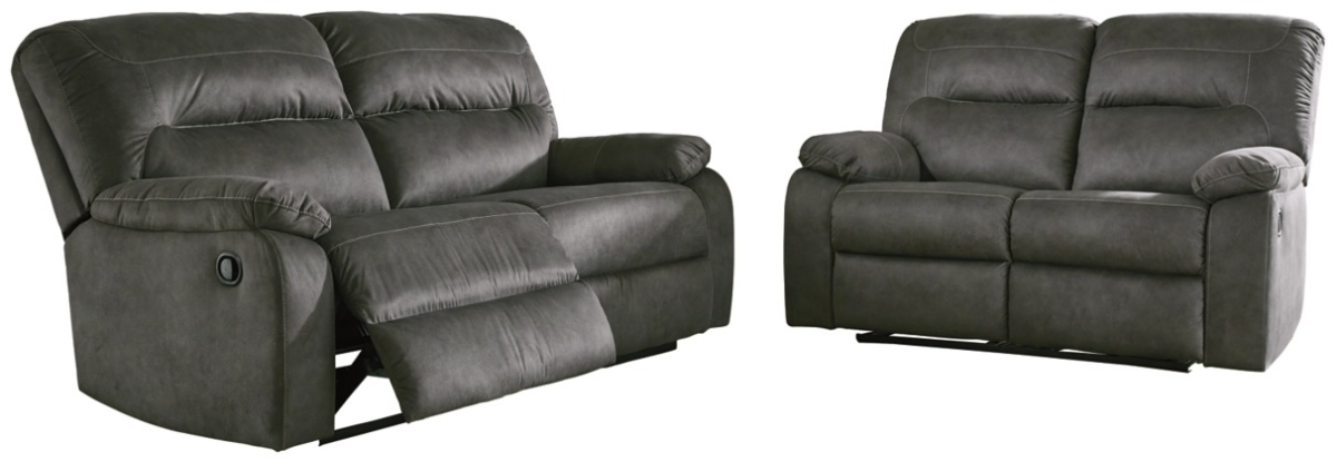Why sacrifice fashion and comfort when you can have it all with this high-style 2-seat reclining sofa and reclining loveseat? Crisp lines, fashion-forward stitching and on-trend gray upholstery make this set a winner among those who agree that furniture should look every bit as good it feels.Read More