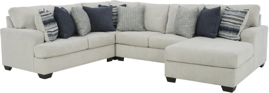 Includes 4 Pieces: Right-arm facing corner chaise, armless loveseat, left-arm facing loveseat, and wedge