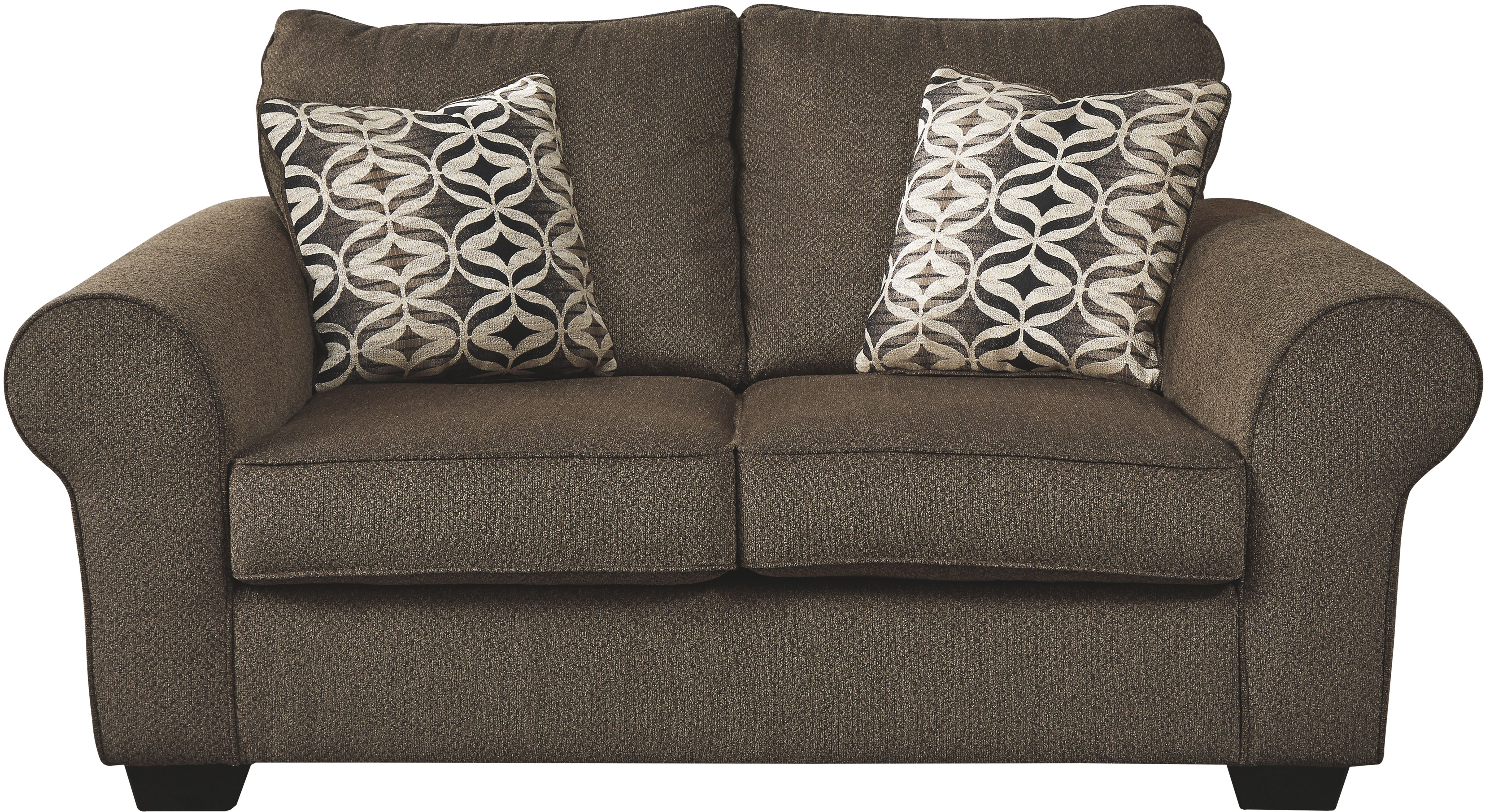 Frame constructions have been rigorously tested to simulate the home and transportation environments for improved durability. Frame components are secured with combinations of glue, blocks, interlocking panels and staples. Seats and back spring rails are cut from mixed hardwood and engineered lumber. Stripes and patterns are match cut. All fabrics are pre-approved for wearability and durability against AHFA standards. Cushions are constructed of low melt fiber wrapped over high quality foam. Style features toss pillow w/welt.