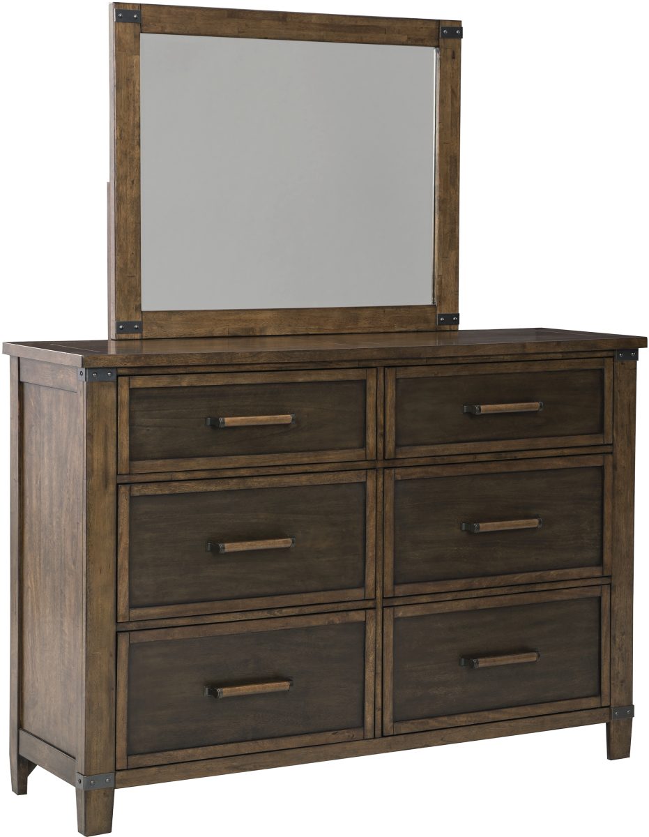 What a fresh interpretation of casual lifestyle design. Inspired by American craftsmanship, but with an elevated sensibility, this dresser and mirror blends distinctive details such as metal corner accents and smooth-gliding drawers for an easy-living aesthetic. Those who appreciate the beauty of wood will be doubly impressed with the two-tone walnut and burnt umber finish that imparts an added level of refinement.