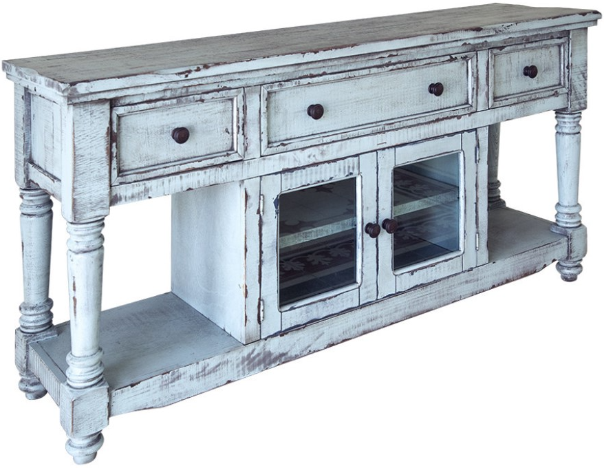 Versatile TV stand may double as buffet or accent console to provide extra storage in any room.
