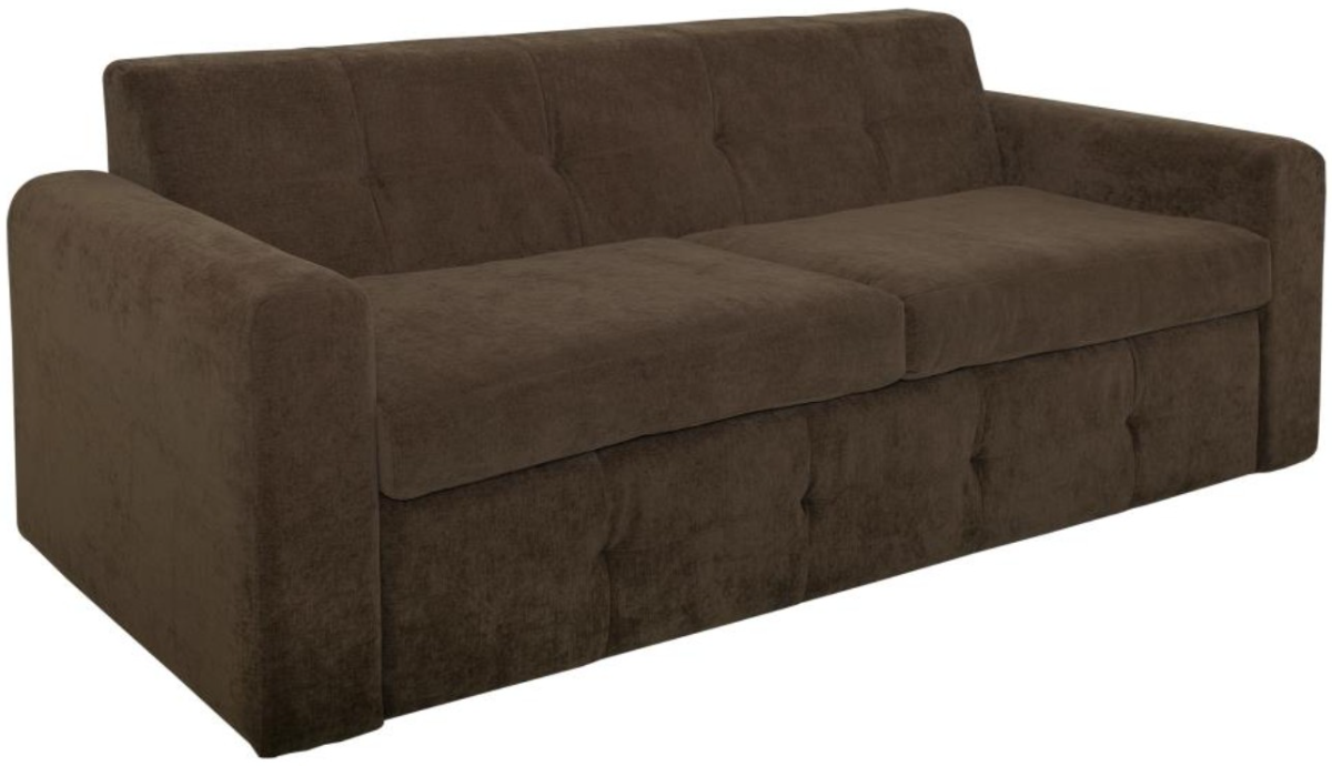 The Mellow pull-out sofa bed features a modern design, upholstered in durable, textured brown fabric, which adds a cozy and inviting touch. It includes two seat cushions and two toss pillows for enhanced comfort. This versatile piece effortlessly converts into a bed, making it a practical solution for small spaces or accommodating overnight guests.Read More
