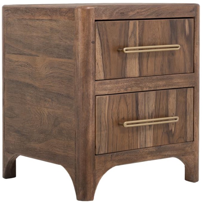 Transform your space with this modern bedroom set. Crafted from engineered teak and sustainable mango wood, this collection combines lasting durability with natural beauty. The rich brown multi-step lacquer finish adds warmth and depth to the furniture. The Praga Nightstand has two spacious drawers for ample storage.Read More