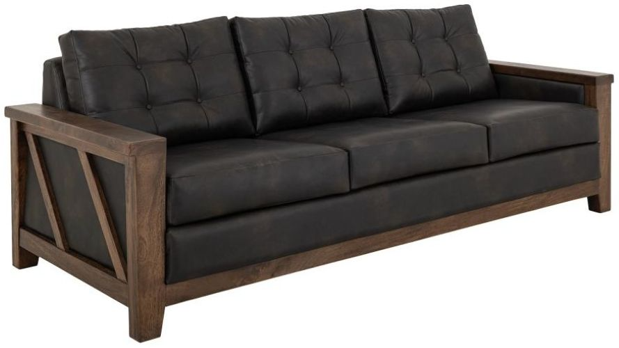 Step into comfort and make this sofa the focal point of your living room. The Walnut sofa features a sturdy wooden frame with a rich brown finish and wide, flat armrests. Both the seats and backrest are upholstered in a dark, leather-like material.Read More