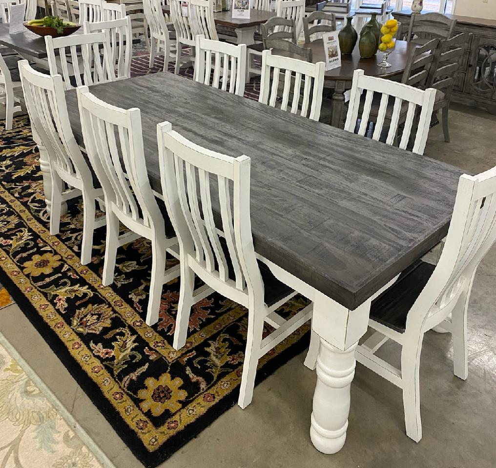 96in long table. All wood construction; Dining Table: MES096A; 8 Dining Chairs: SIL006VRead More
