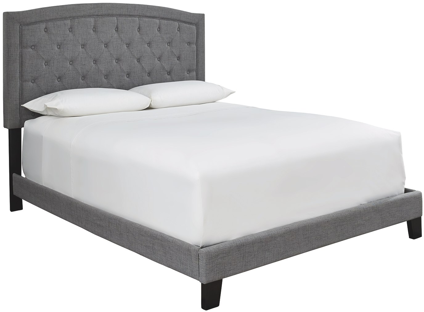B080-1XX (Gray) /- 2XX (Charcoal) features arched headboard with nail head trim. B080-7XX (Gray) /-8XX (Charcoal) features arched style headboard with frame detail and button-tufted detail. All beds do not require box spring.