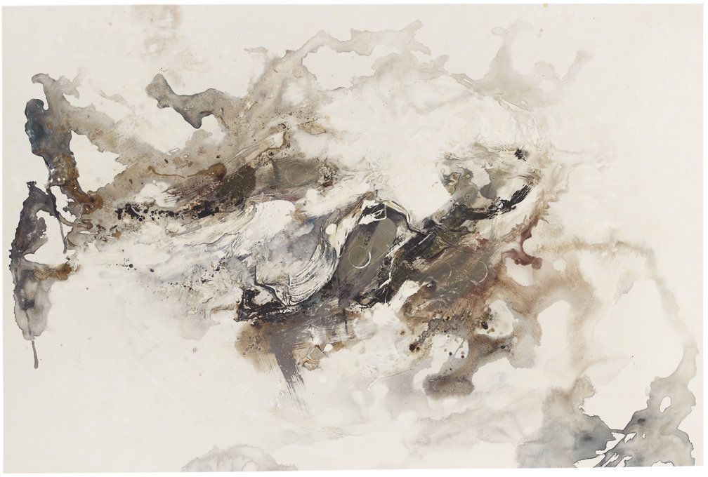 Giclee reproduction; gray, brown, white, blue, and black palette