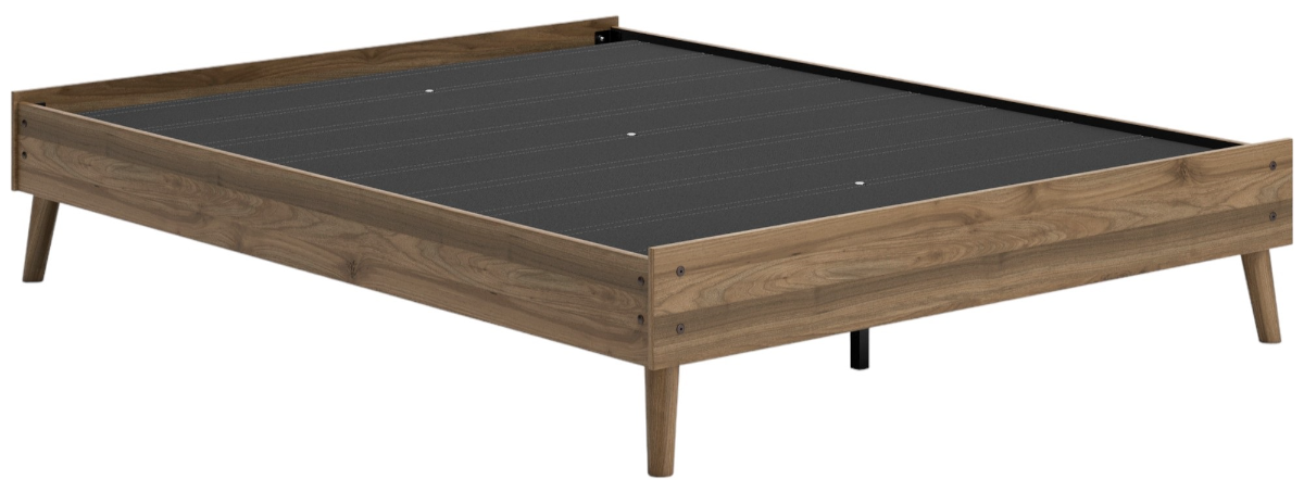 Dare to take minimalism to the max. This queen platform bed has a richly relaxed feel thanks to its honey brown finish over replicated wood grain. Magnificently mod splay legs are a compelling complement to the streamlined design. There's no doubt about it: This contemporary piece is sure to become a classic.Read More