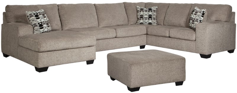 Includes 3-piece sectional (left-arm facing corner chaise, armless loveseat and right-arm facing sofa) and an oversized ottoman