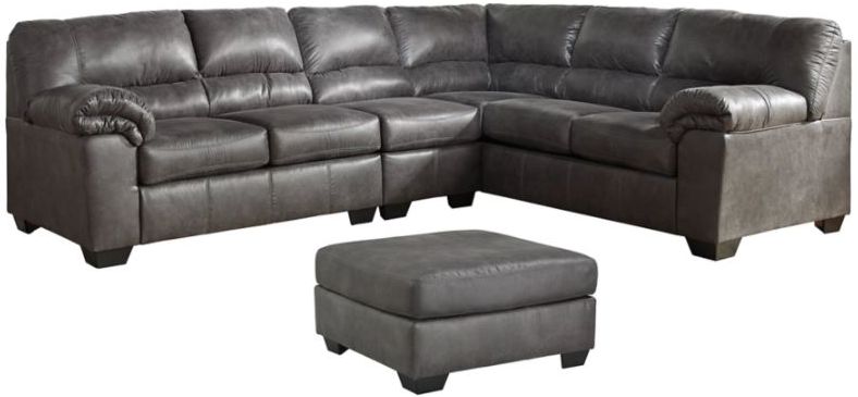 Includes 4 pieces: left-arm facing loveseat, right-arm facing sofa, armless chair and ottoman