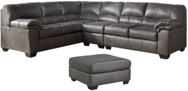 Sectional with attached back and loose seat cushions; ottoman firmly cushioned