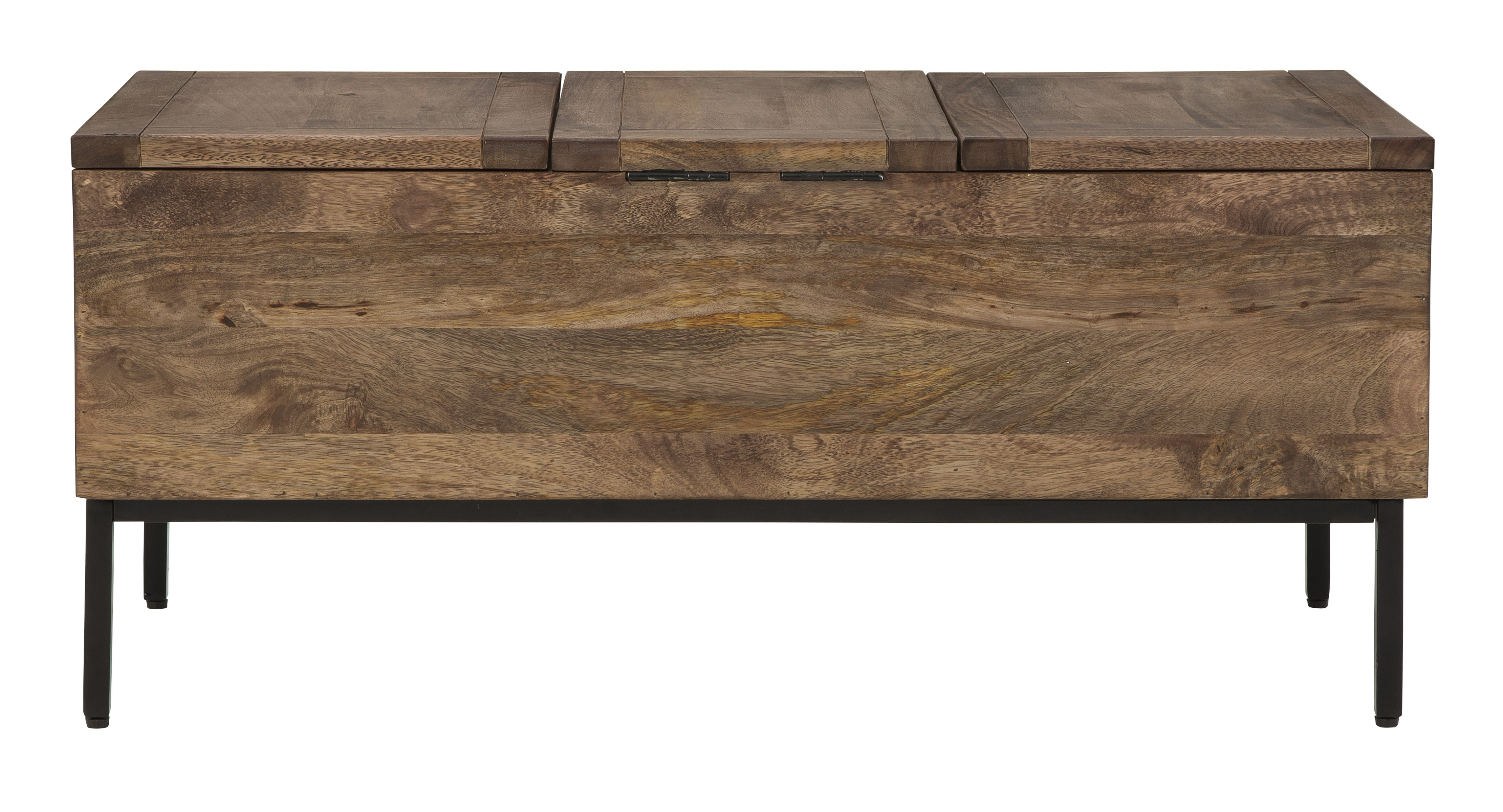 Unlock a quaint touch of casual style and convenience in your living area with this storage trunk. This vintage-inspired trunk is the ideal accent piece for your urban oasis, modern farmhouse or contemporary cottage. Metal legs and 3 storage compartments with hinged tops add style and functionality to keep your space organized and clutter free.