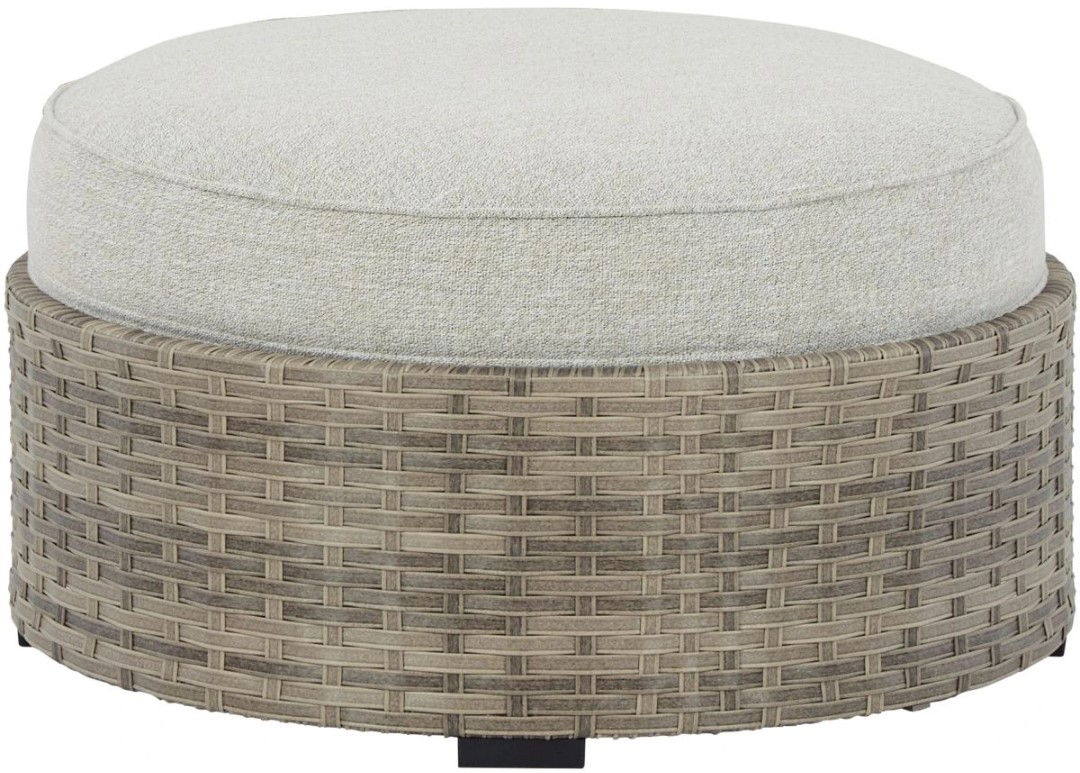 This cool, casual outdoor cushioned ottoman will raise the comfort level and visual appeal of your outdoor living space. Made of handwoven wicker in easy-going beige tones, the ottoman blends beautifully into your lanai or pool and patio area with a comfy cushion wrapped in Nuvella® high performance fabric that is stain resistant.Read More