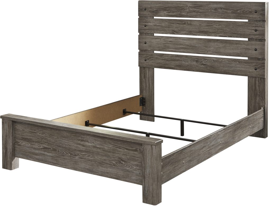 As much as you love escaping to the country, you’re equally drawn to the city. No wonder the Cazenfeld queen panel bed fits you so well. Sporting an easy-on-the-eyes finish inspired by weathered barn wood, Cazenfeld is sure to please with an uptown look and a down-to-earth sensibility. Open slat headboard with rivet accents gives the urbane pastoral aesthetic an added punch of character. Mattress and box spring available, sold separately. Rustic warm gray finish over replicated Oak grain accented with dark charcoal finish over replicated Oak grain.