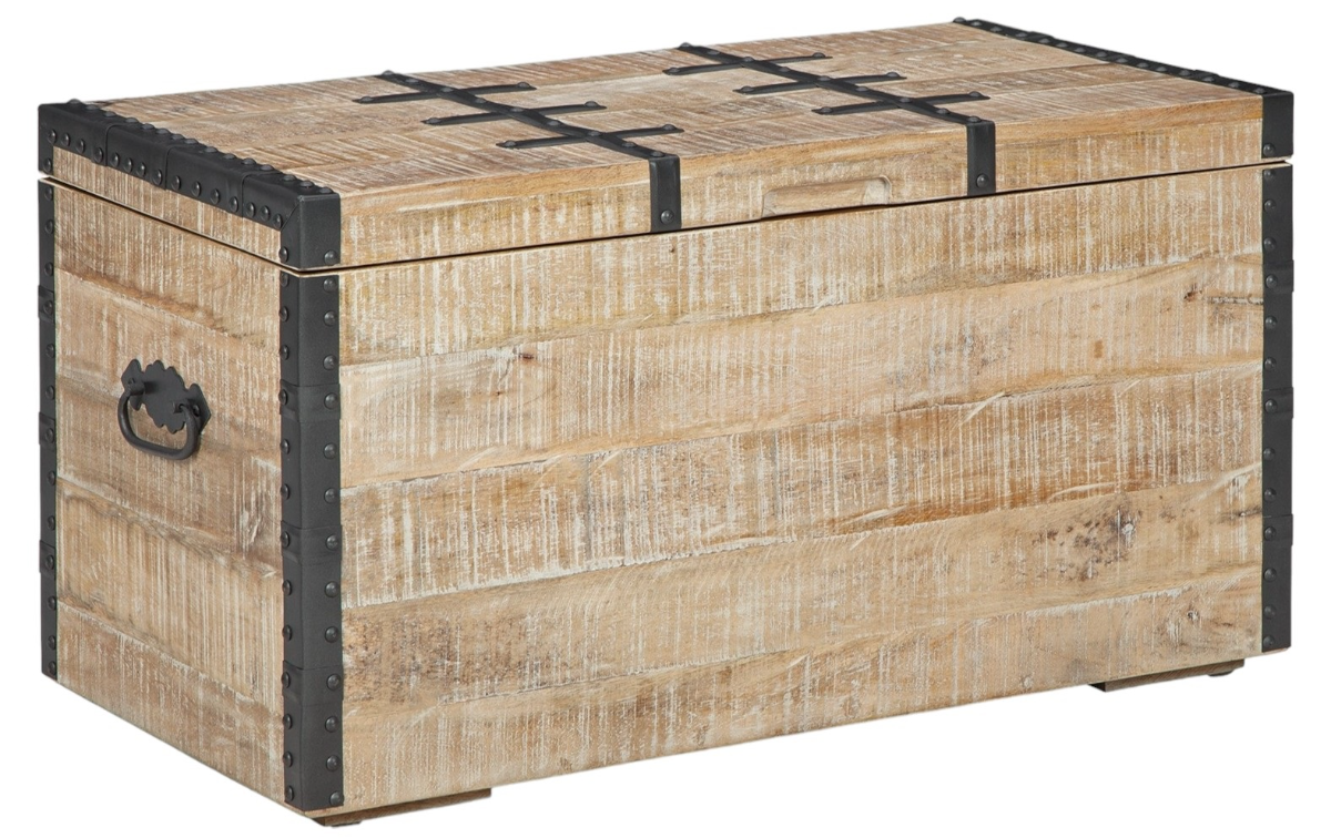 The Dartland trunk is constructed of solid wood in a whitewash finish with dark gray finished metal hardware. This trunk also features a hinged top with storage.Read More