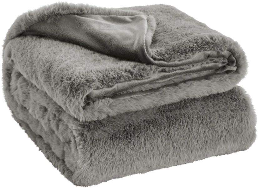 Add comfort and style to your room with this throw blanket from Gariland collection. This throw blanket is shown in gray color and feature a faux rabbit fur and polyester. Solid reverse in white.Read More
