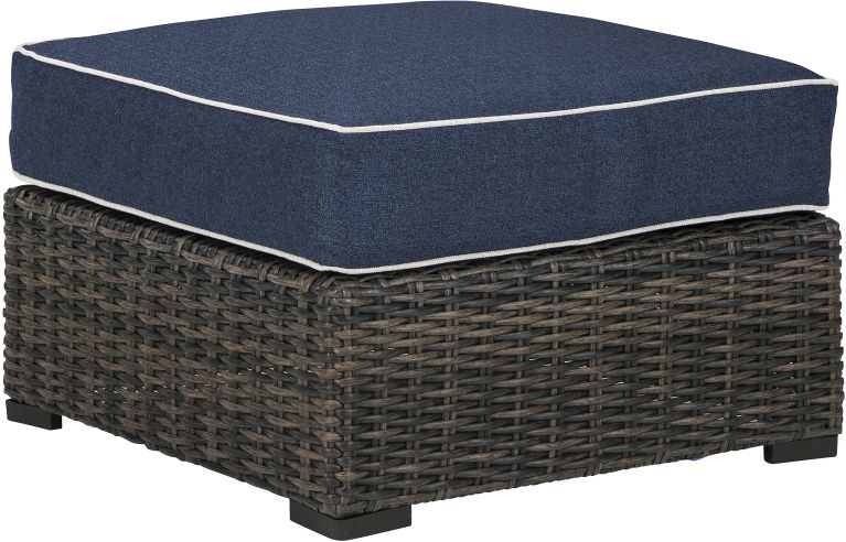 Style. Comfort. Quality. Value. This ottoman with cushion really goes to town, giving you the total package for outstanding outdoor living. Crafted to withstand the elements, this outdoor ottoman’s resin wicker base and rust-proof aluminum frame ensure carefree living, while the plush cushion covered in fade-resistant Nuvella® fabric provides stylish appeal. Comfy and casual, it's perfect for use inside or out.