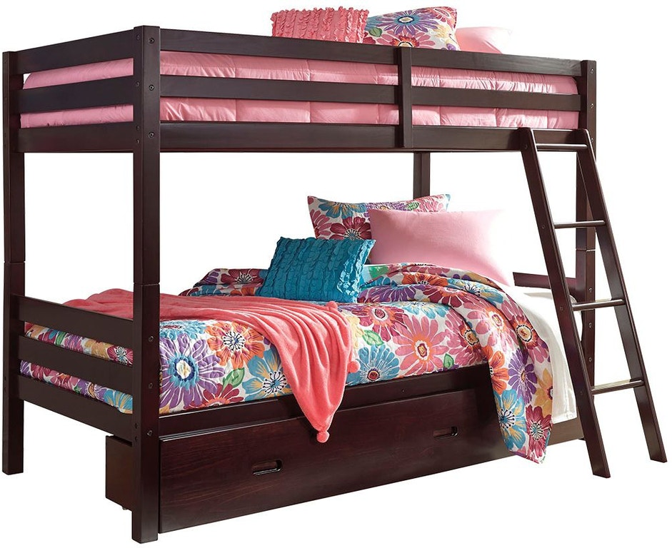 Save space while making bedtime a lot more appealing with this twin bunk bed with storage. Sporting a clean-lined contemporary design, this bunk bed is kid-friendly furniture with a touch of grown-up sophistication. This solidly made bed has protective guard rails with a fixed ladder for easy top bunk access. Set on casters, the under bed drawer is ideal for storing toys, clothes and linens. Mattresses sold separately.