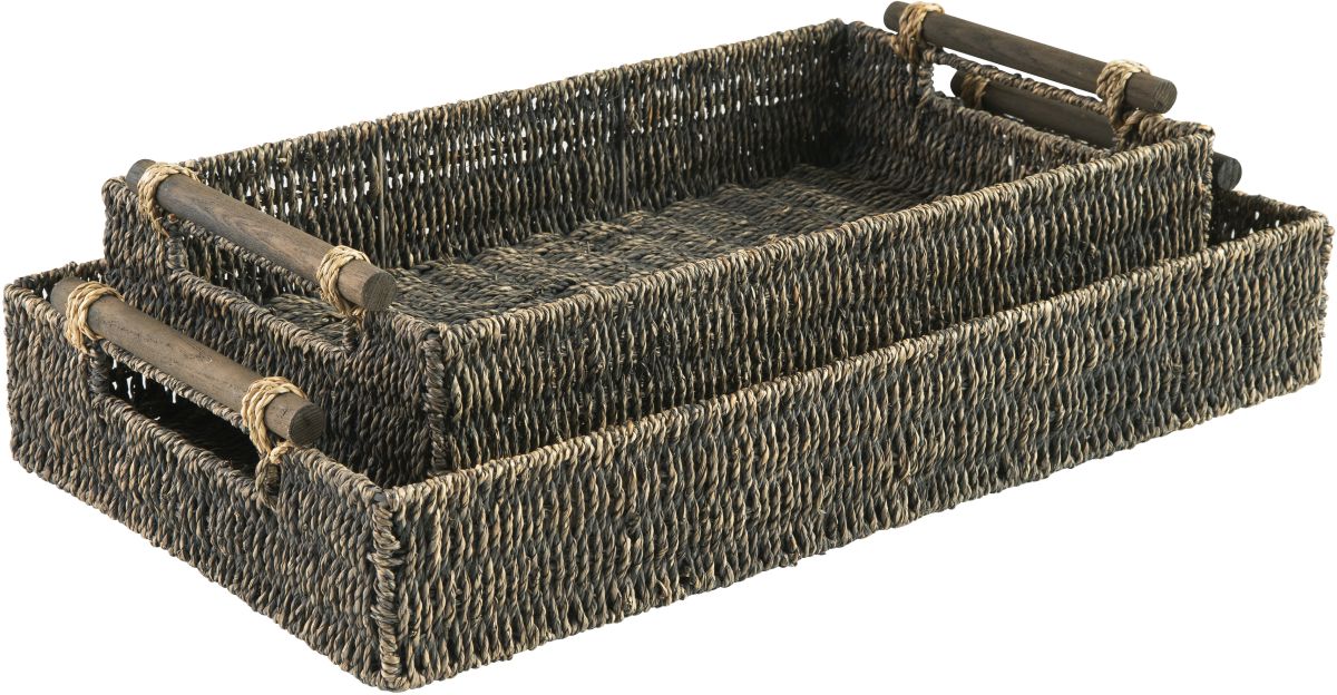 This tray set with cutout wood handles adds a lovely touch of natural appeal to nearly any room. Woven from seagrass in an antiqued gray finish, these lovely trays make a great pick for everything from displaying decorative elements to storing essentials like remotes, game controllers and much more.Read More