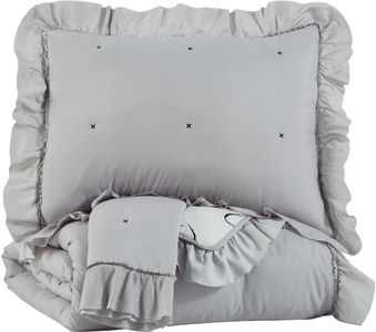 3-Piece comforter set - includes comforter and 2 shams. Solid in gray with flange border. Reverses to heart design in black and white. Polyester microfiber cover with polyester filling. Machine washable.Read More