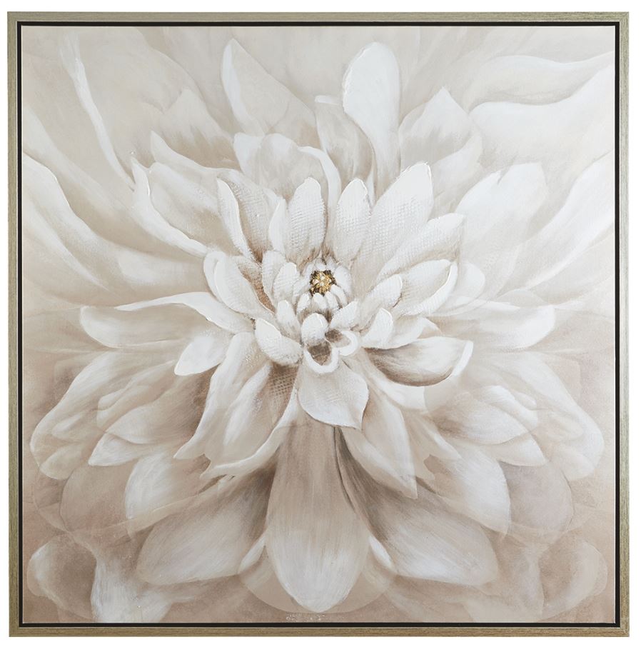 Bring serenity to your modern paradise with this wall art. Unfurled tight pedals full of enchanting beauty depicted in this flower portrait provide a soothing backdrop in any decor, especially a modern decor. The flower is in shades of taupe and white and has gold leaf embellishment—quite pretty for adding a touch of nature to any room.Read More