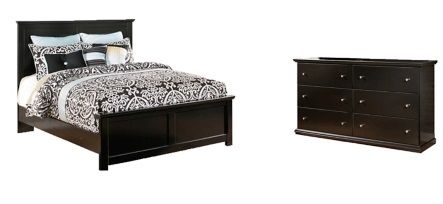 Includes panel bed with storage (headboard, footboard with storage drawers, rails and roll slats) and dresser (mirror not included)