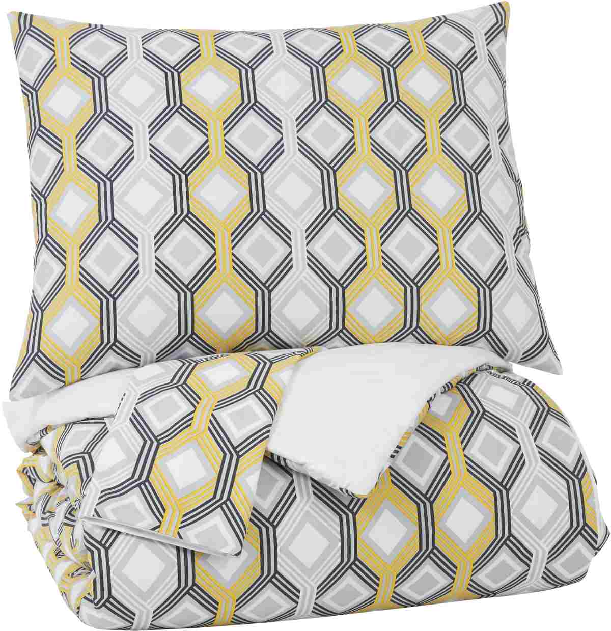 3-Piece Comforter Set - Includes Comforter and 2 Shams. Diamond Design in Yellow, Gray and White. Cotton Cover with Polyester Filling. Machine Washable.