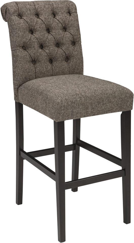 Delight in a cozy dining experience with the linen-weave upholstery, rolled top, and comfy footrest of the Tripton bar-height barstool.
