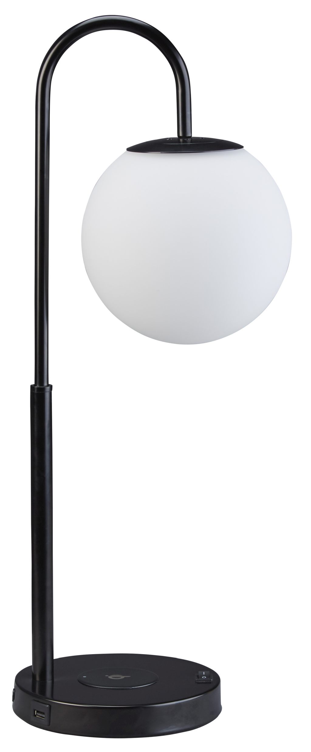 Poised and graceful, this contemporary desk lamp instantly updates any living room. Crafted with a striking black finish, it’s paired with a white globe shade for a luminous glow. The integrated wireless charging and USB port add a convenient way to keep your devices powered.Read More