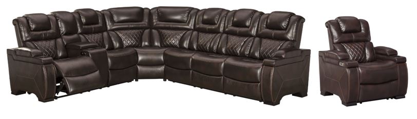 Your modern living room awaits with the Warnerton 3-piece power reclining sectional. Complete with practical faux leather upholstery, one-touch power controls, adjustable headrests and USB ports, it makes finding the best seat in the house a breeze. Flip-top armrests, a roomy storage console and cup holders galore keep drinks, snacks and remotes close by. Go ahead—treat yourself to a high-design home theater experience, priced to put you at ease. Assembly required for this product.