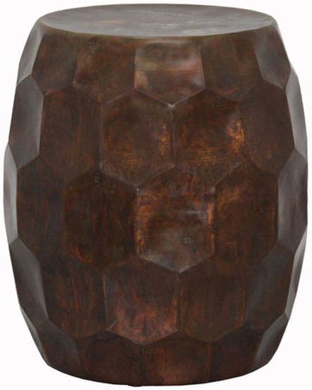 Accent Stool. Indoor/Outdoor Safe. Honeycomb Design. Burnt Copper Finished Metal. Due to the finishing process of this product, some variations may occur.